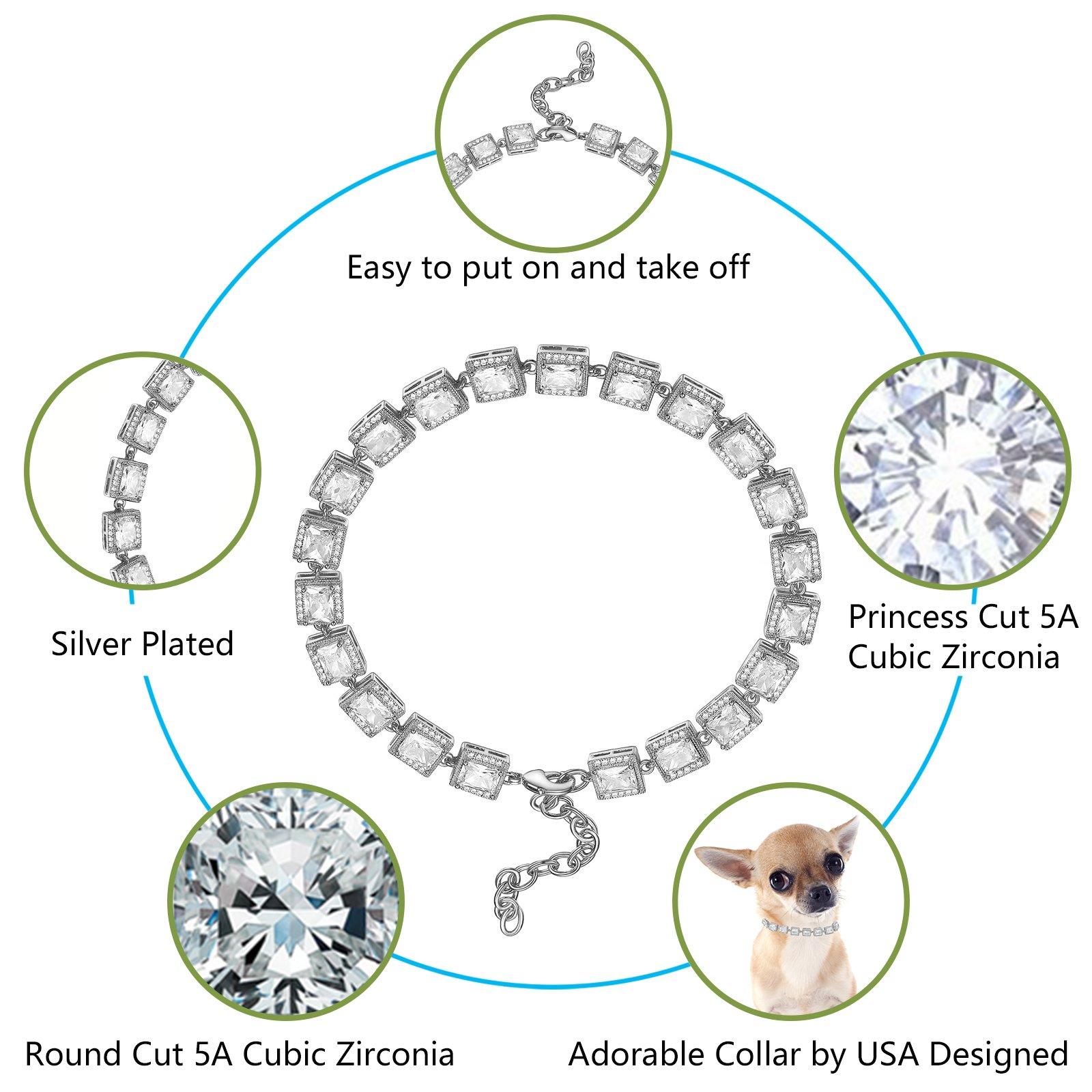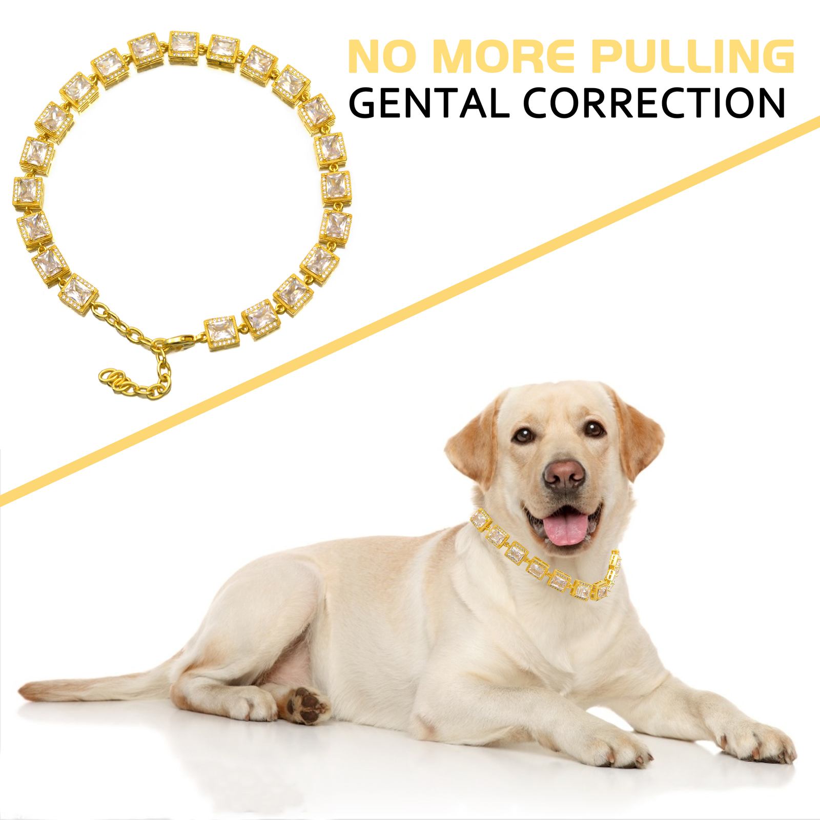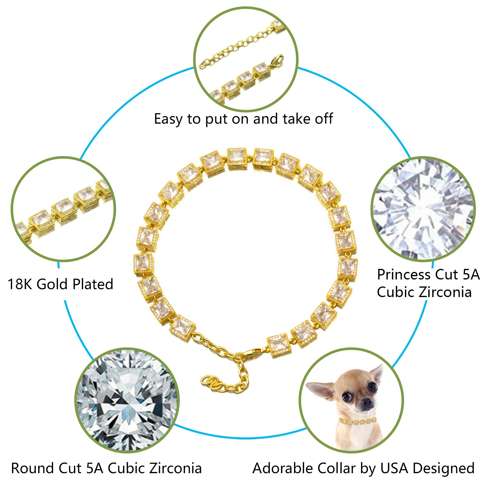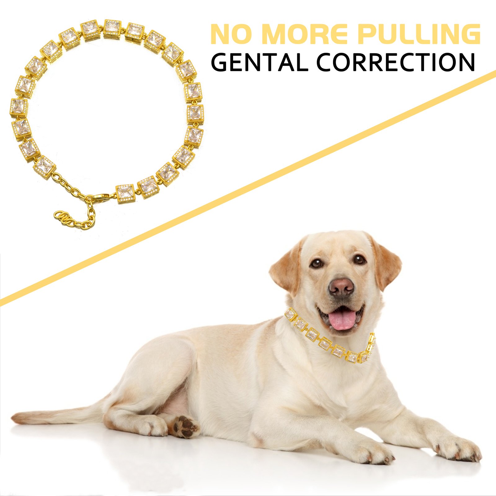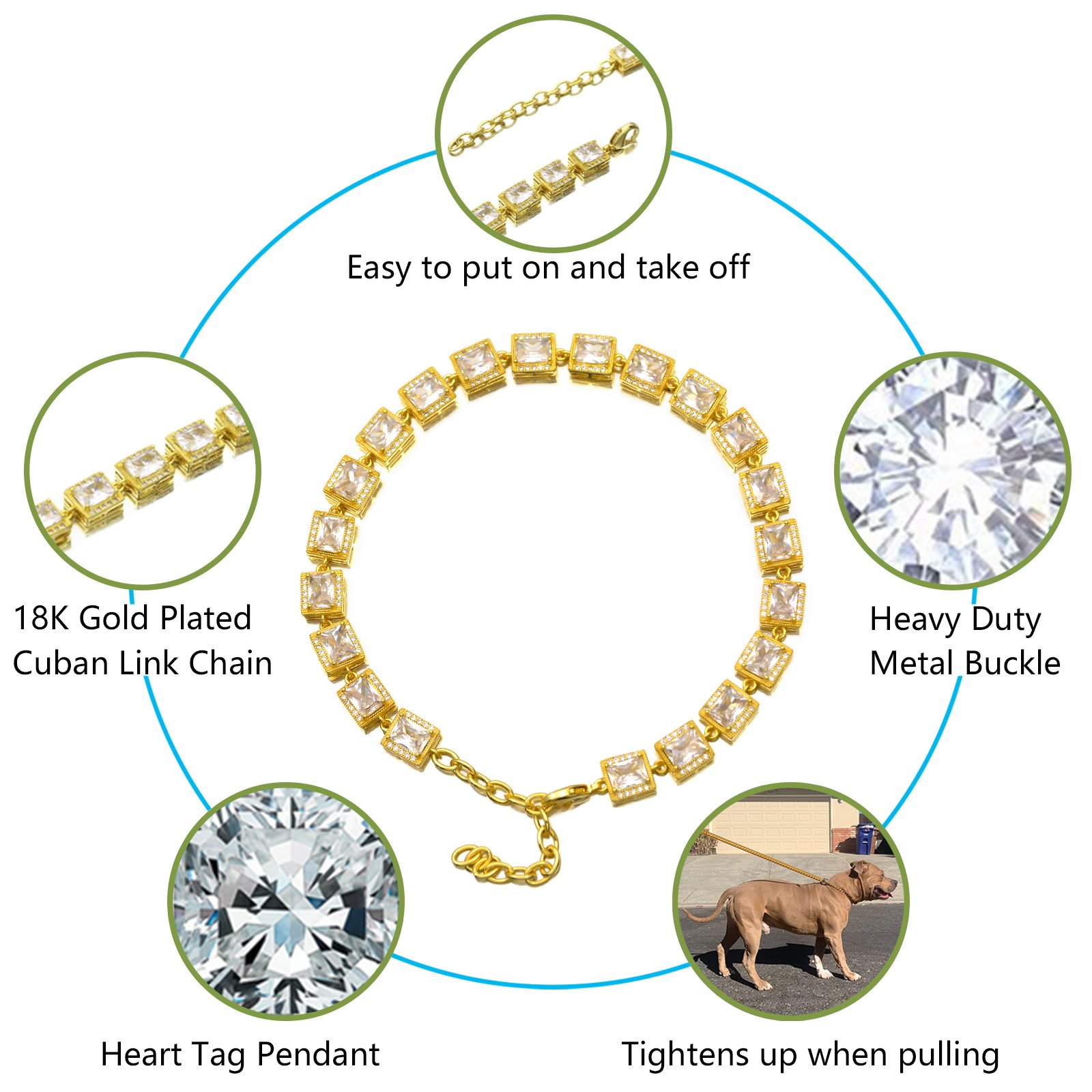 Dog Collars for Small Medium Dogs Dog Chain Collars Iced Out Tennis 5A Cubic Zironia Bling Collar for Puppy Kitty Brass and zircon 18K gold Choke Collar with Crystal Stones
