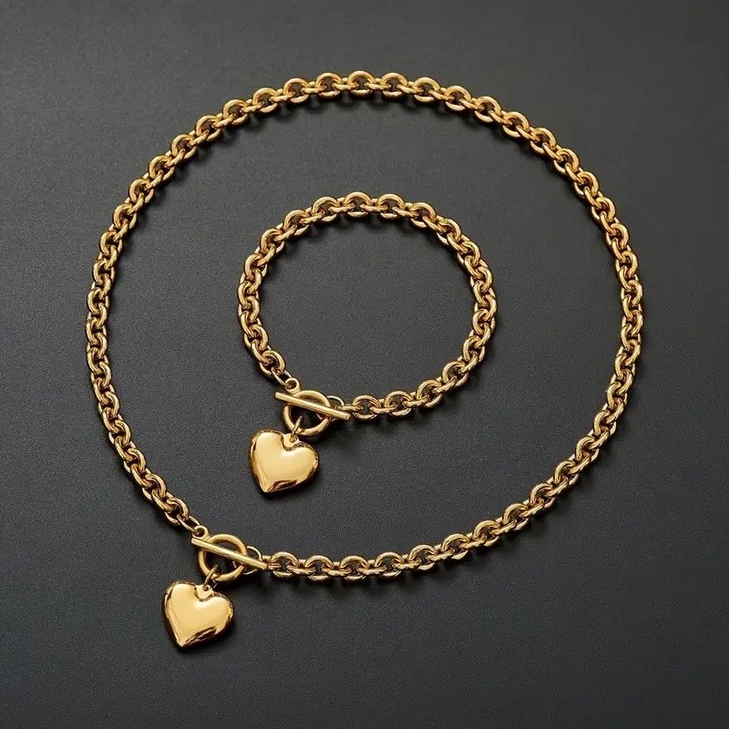 Gold Womens Stainless Steel Heart Charm Beaded Ball Delicate Adjustable Bracelet, Rose Gold