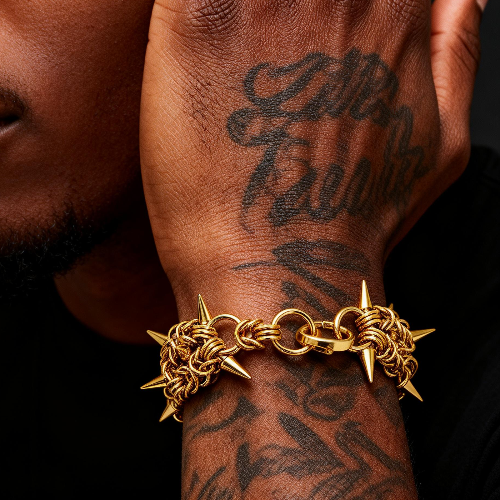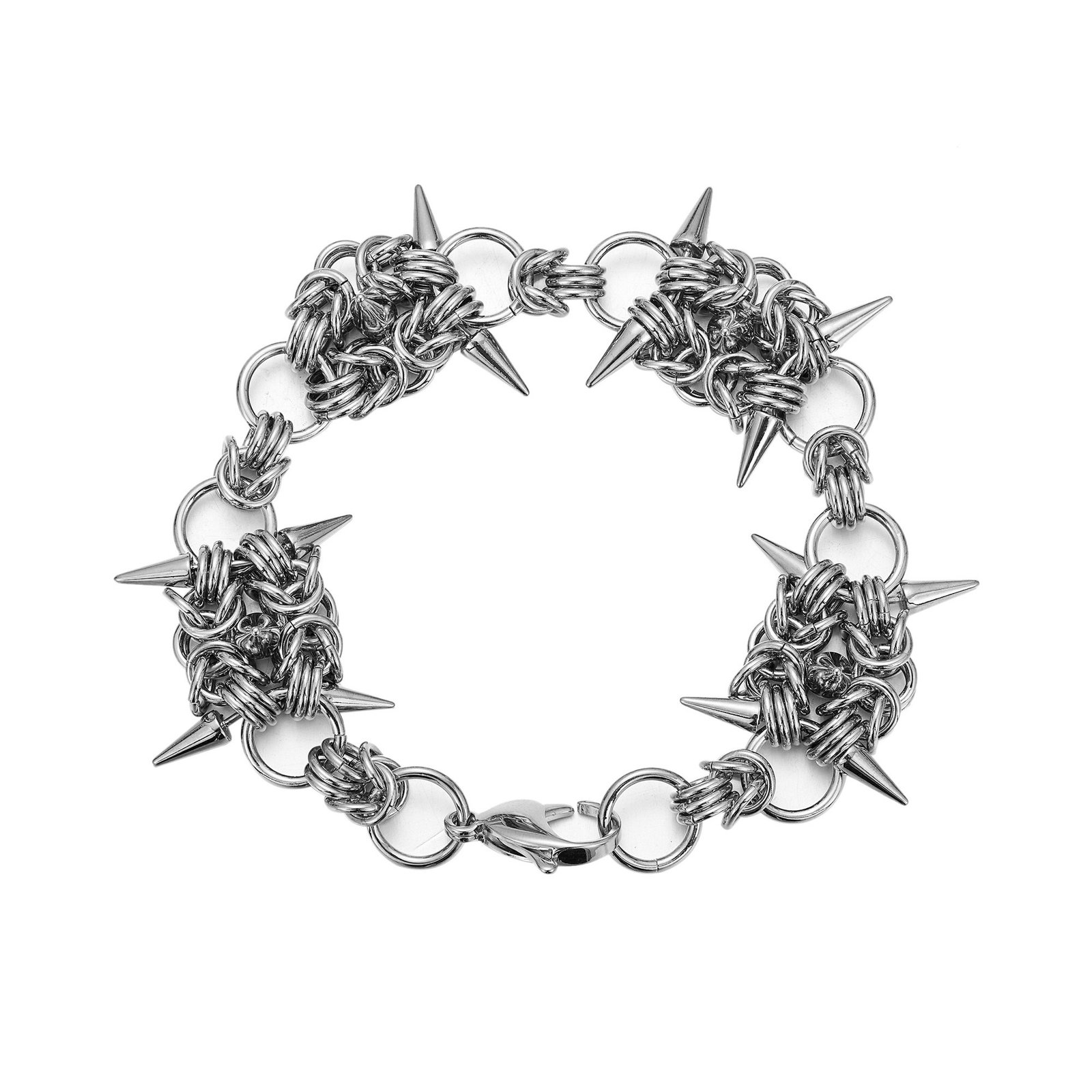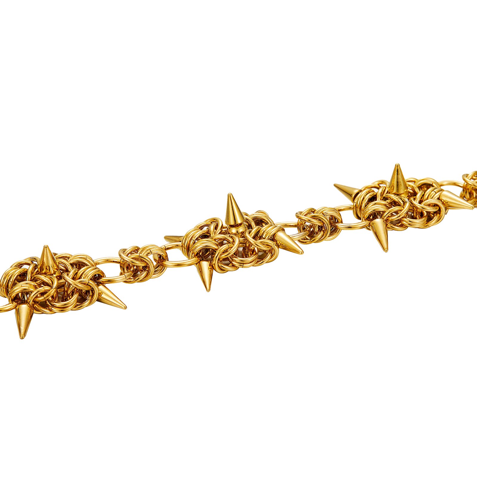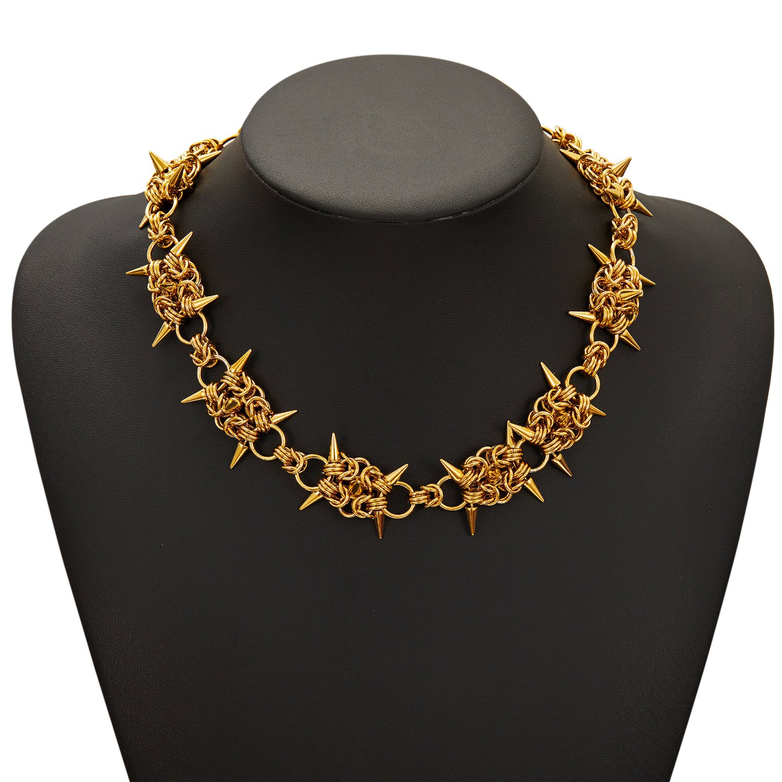Adjustable Hip Hop Cool Spike Choker Rivet Goth Necklaces Chokers with Spikes and Chain Streetwear Vintage Punk Necklace in yellow gold