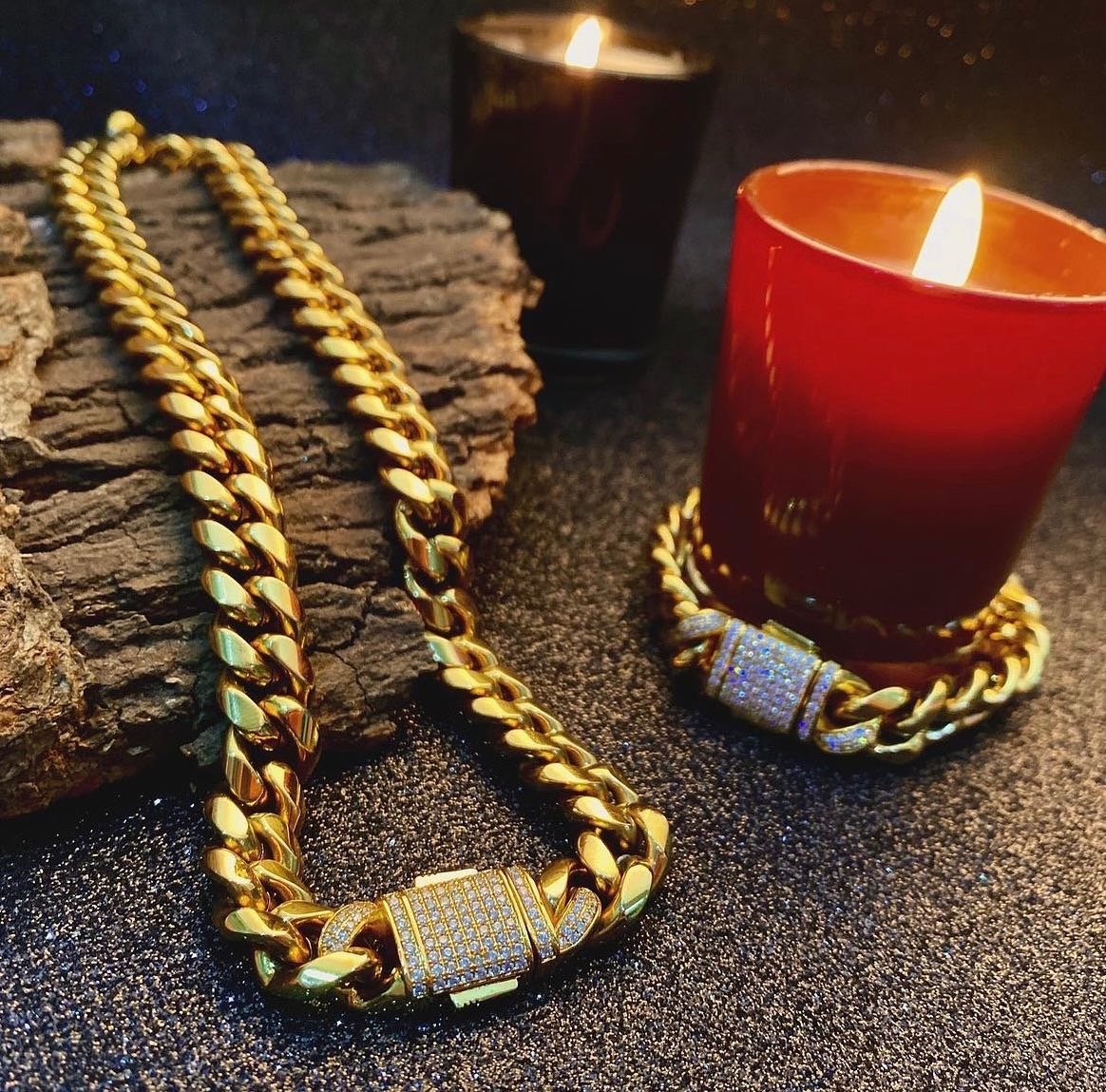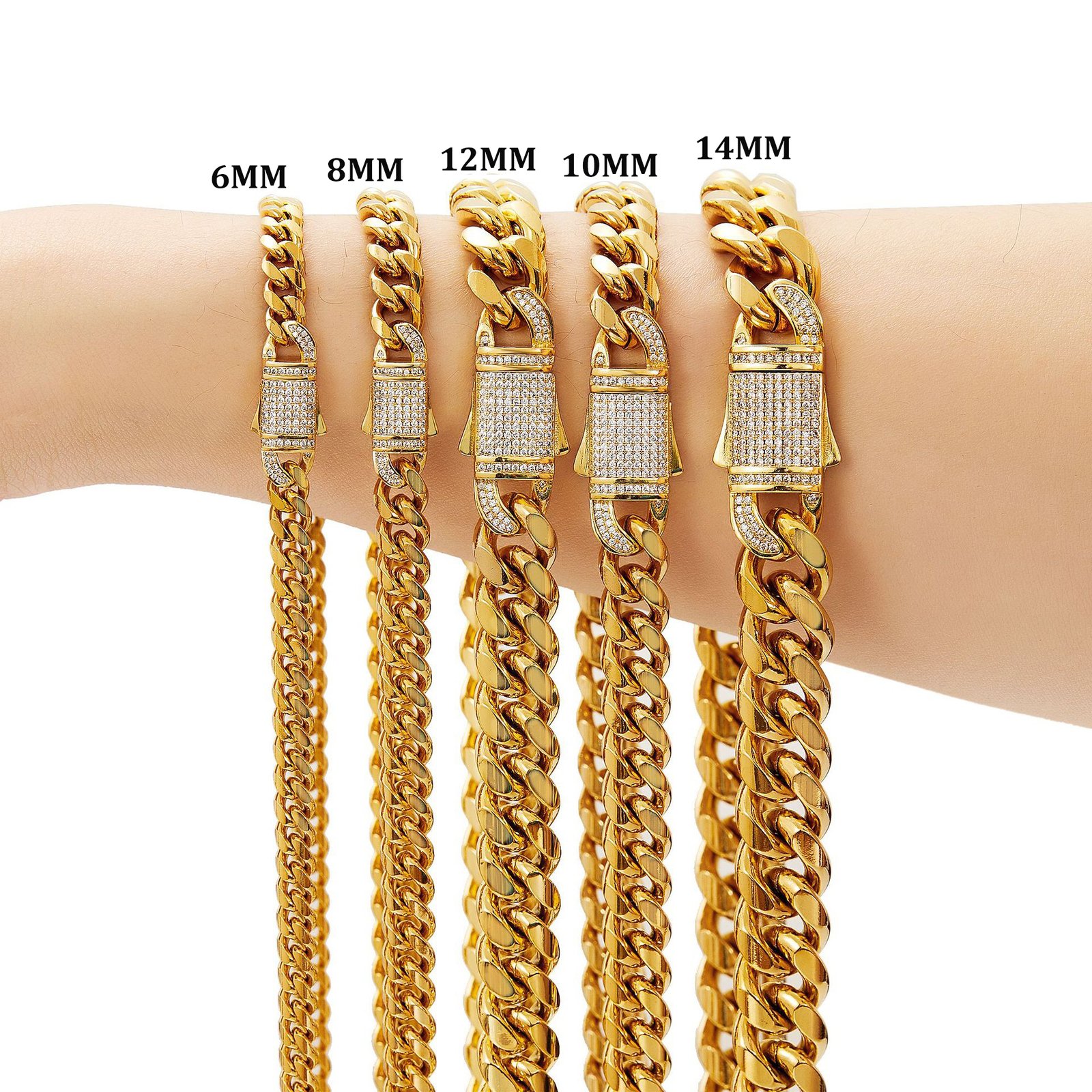 8/10/12/14mm Iced Clasp Cuban Chain Necklace 18K Gold