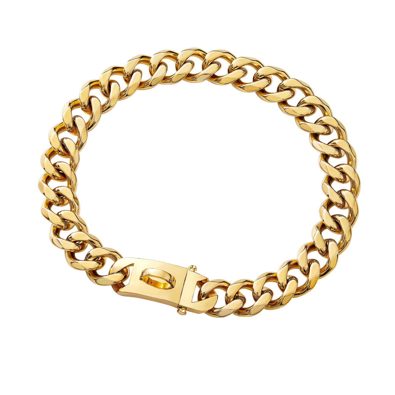 Strong Stainless Steel Gold Dog Chain Collar with Easy Lock & Release Buckle,18K Gold silver Plated Cuban Link Chain Dog Necklace Collar for Medium Large Dogs