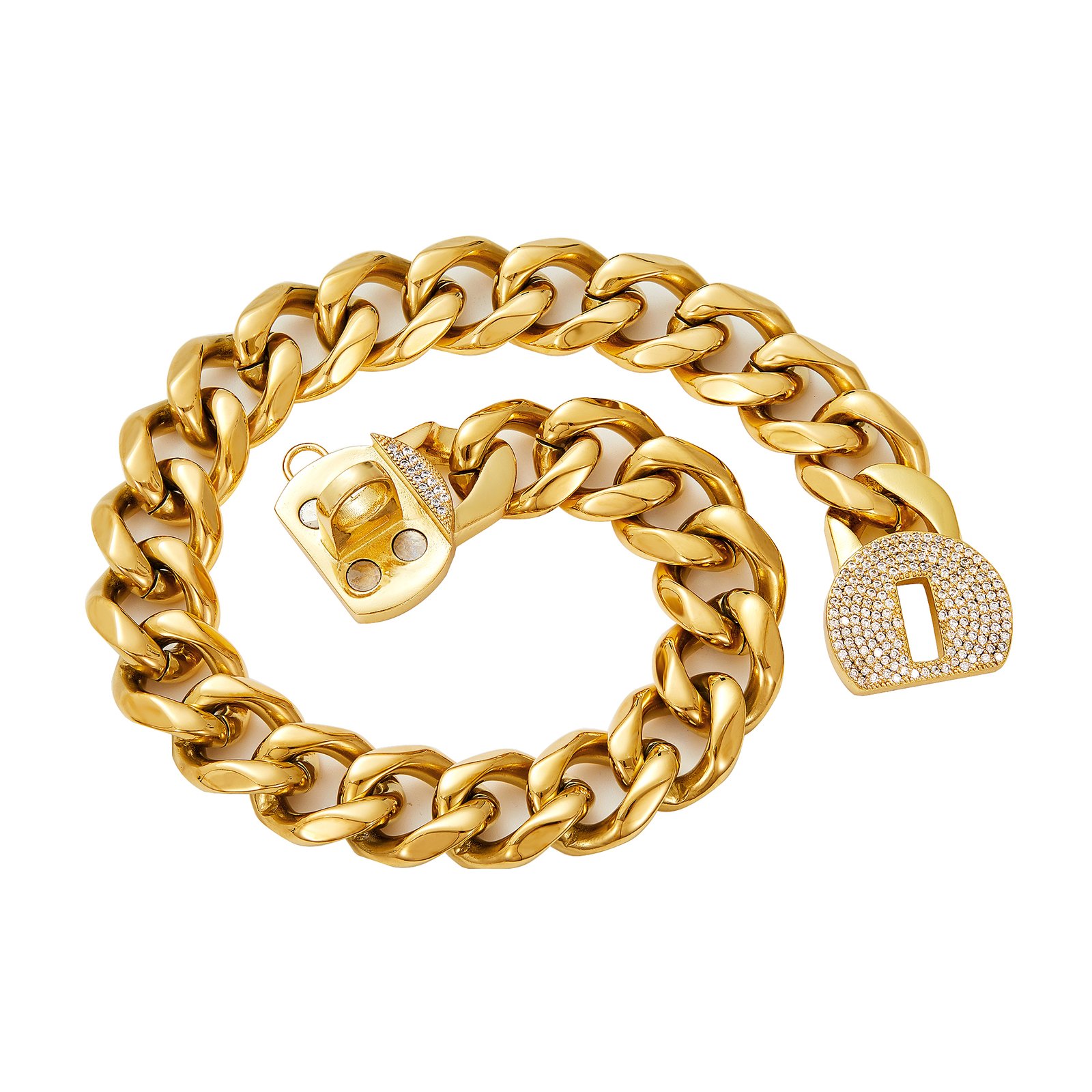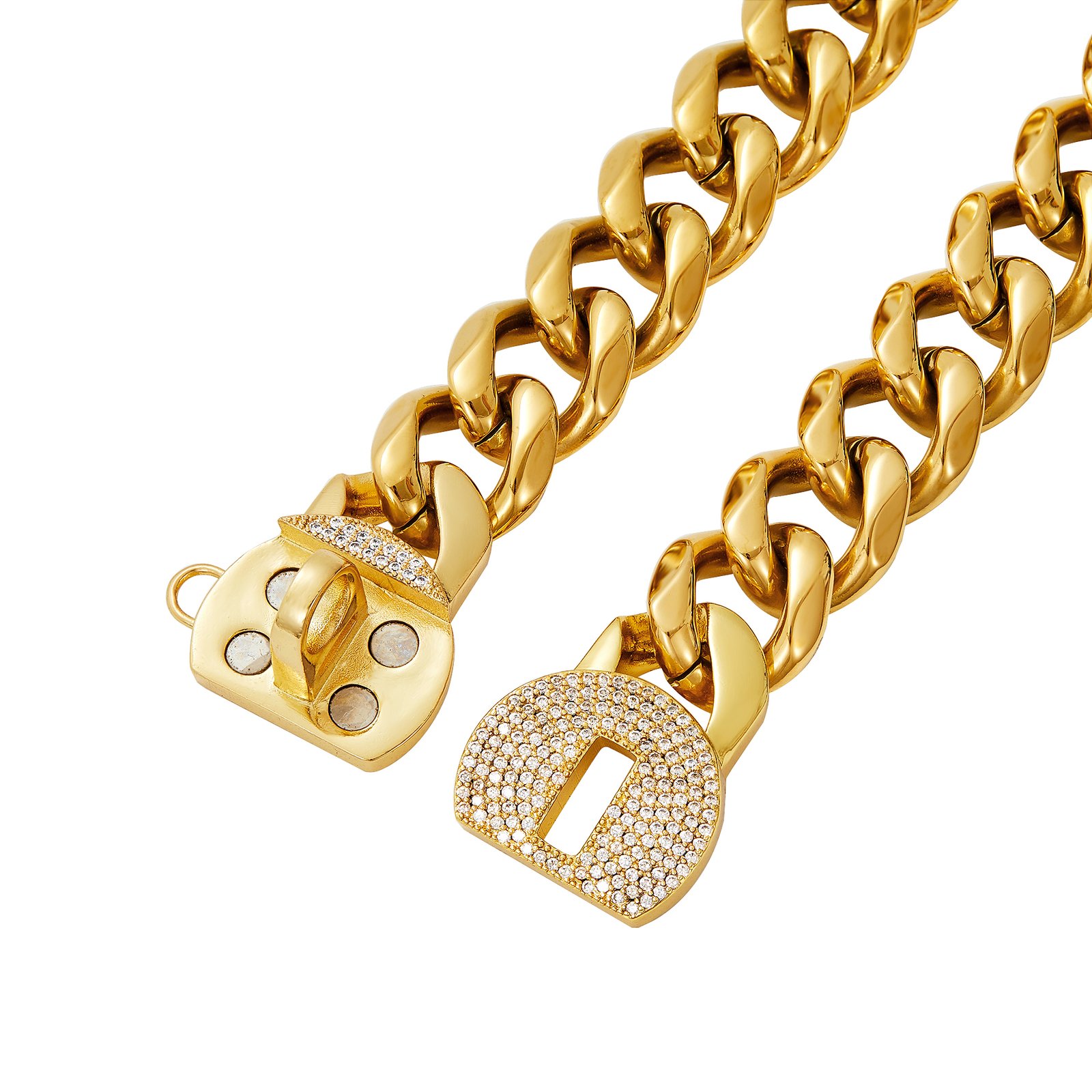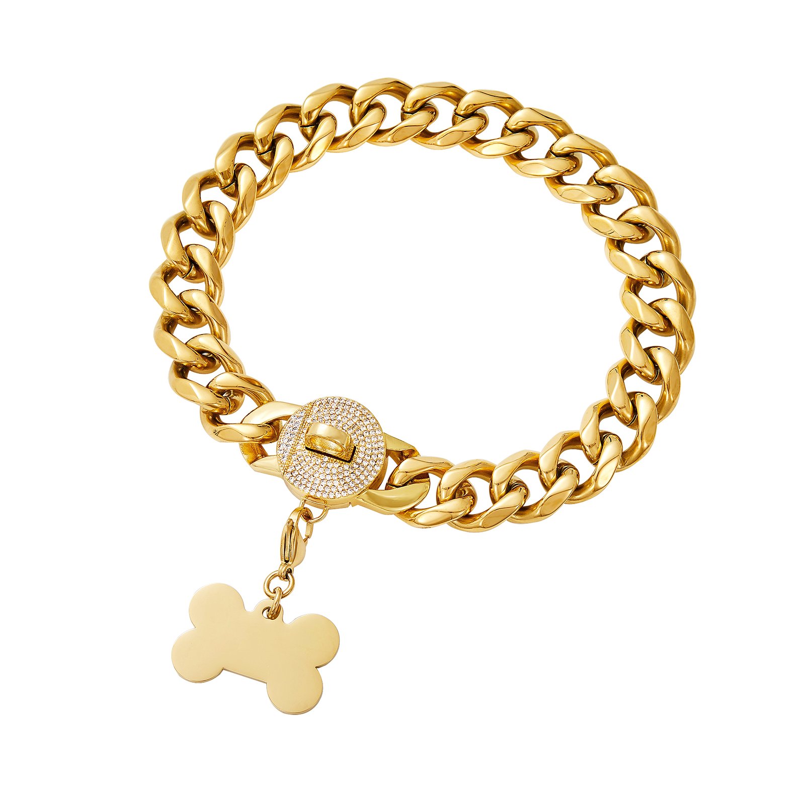 18K Gold Dog Chain Collar with Name Tag,Bling Bling Cubic Zironia Buckle,Stainless Steel Cuban Link,Fashion Necklace for Small Medium,Large Dogs