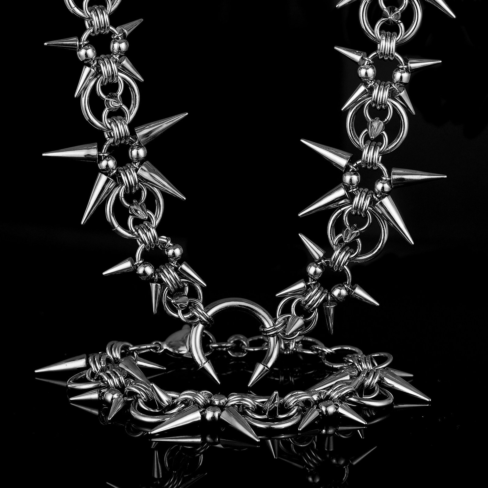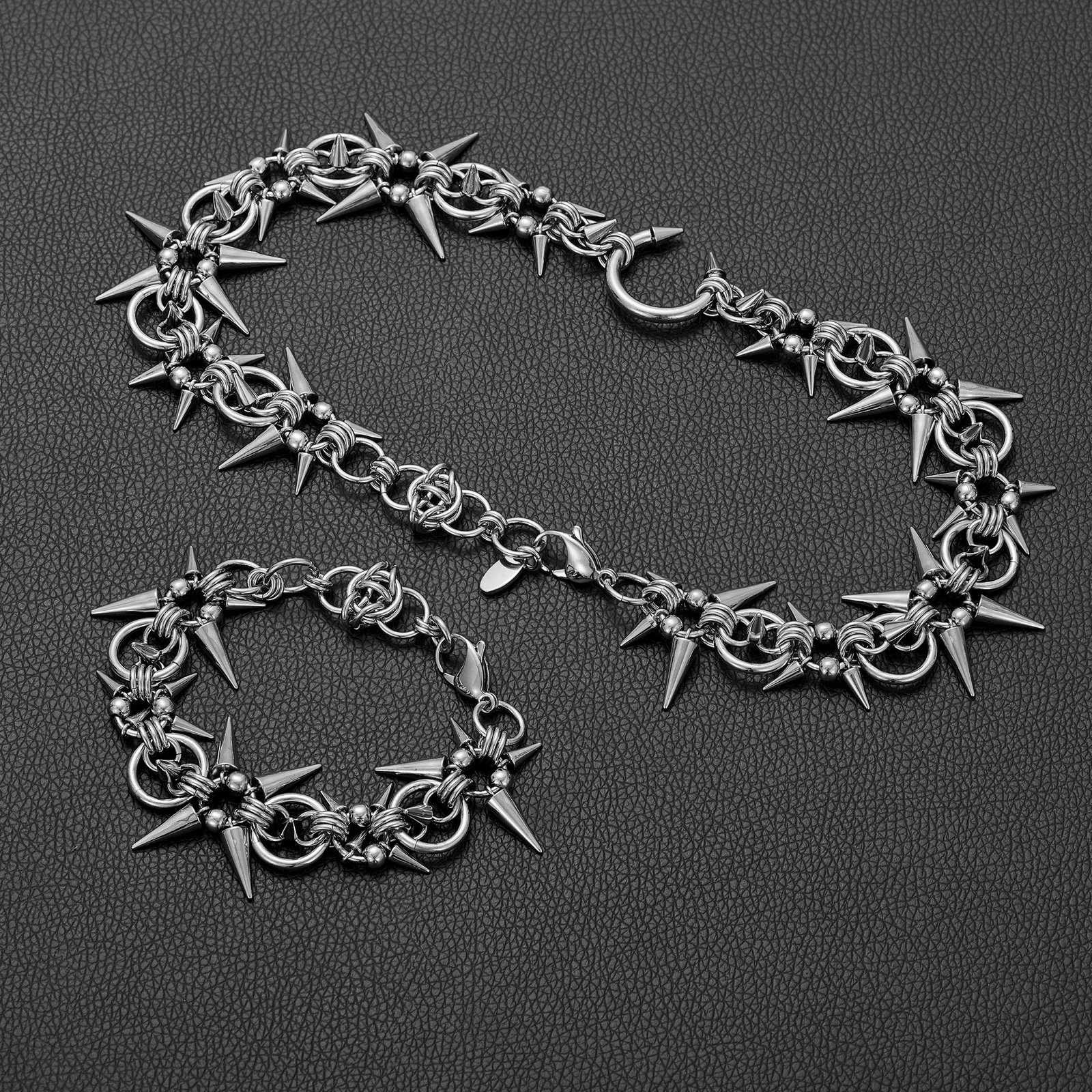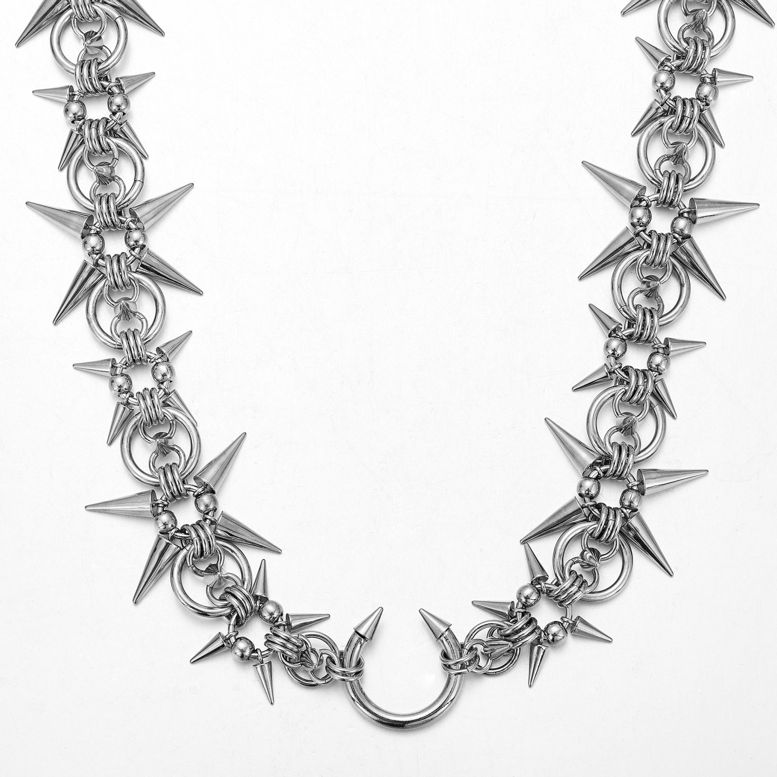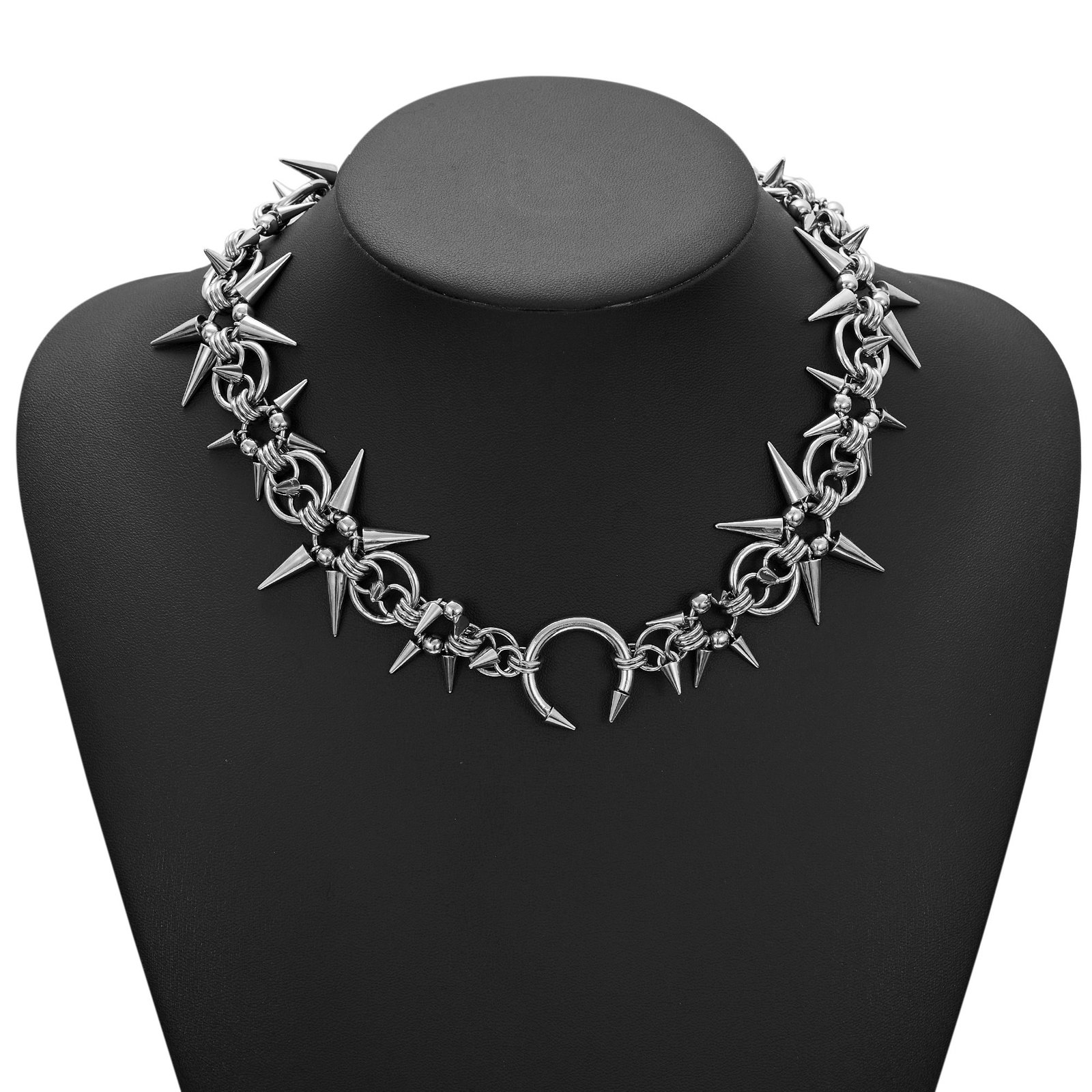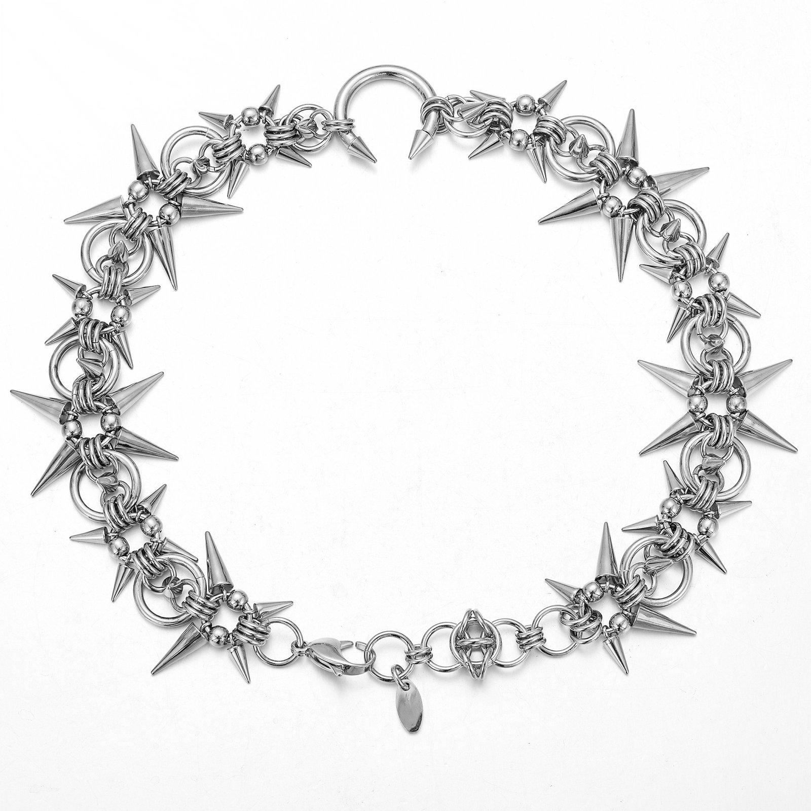 Adjustable Hip Hop Cool Spike Choker Rivet Goth bracelet Chokers with Spikes and Chain Streetwear Vintage Punk bracelet in white gold
