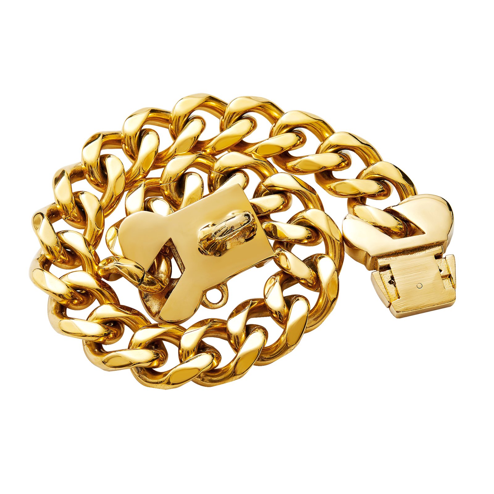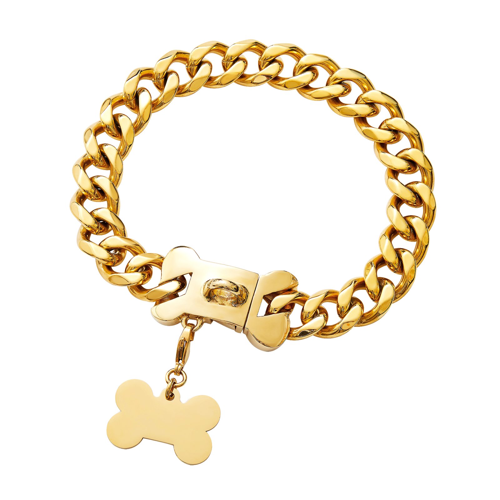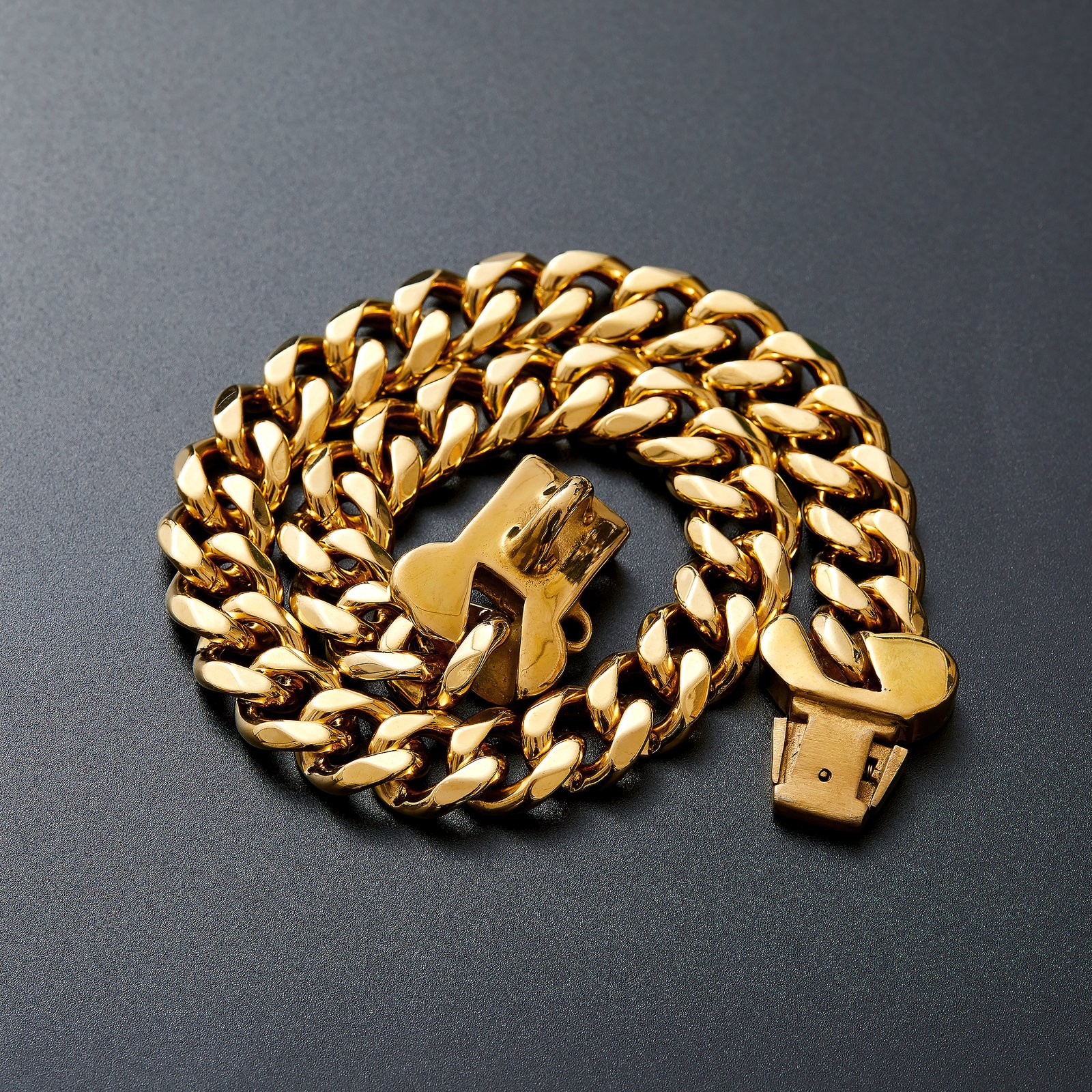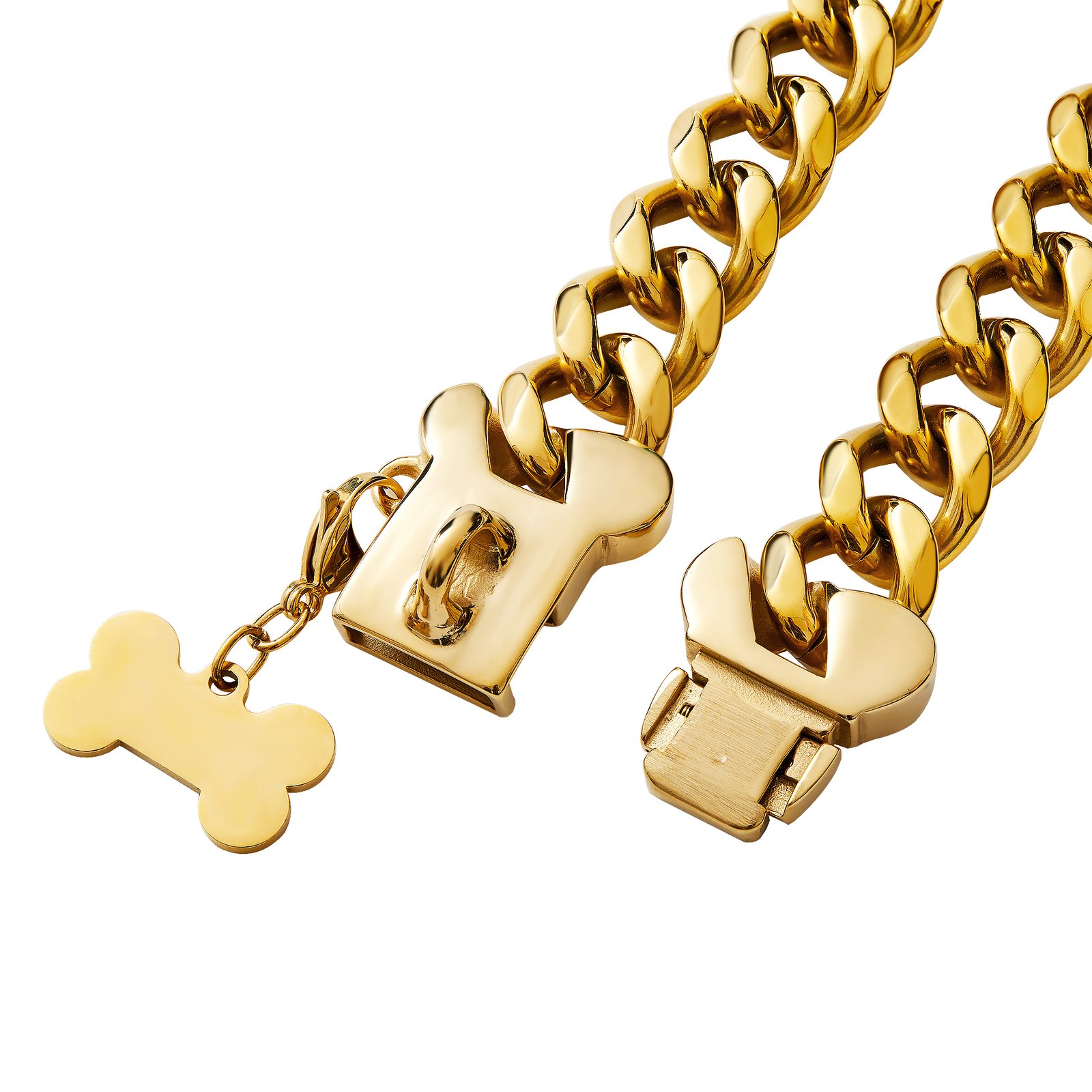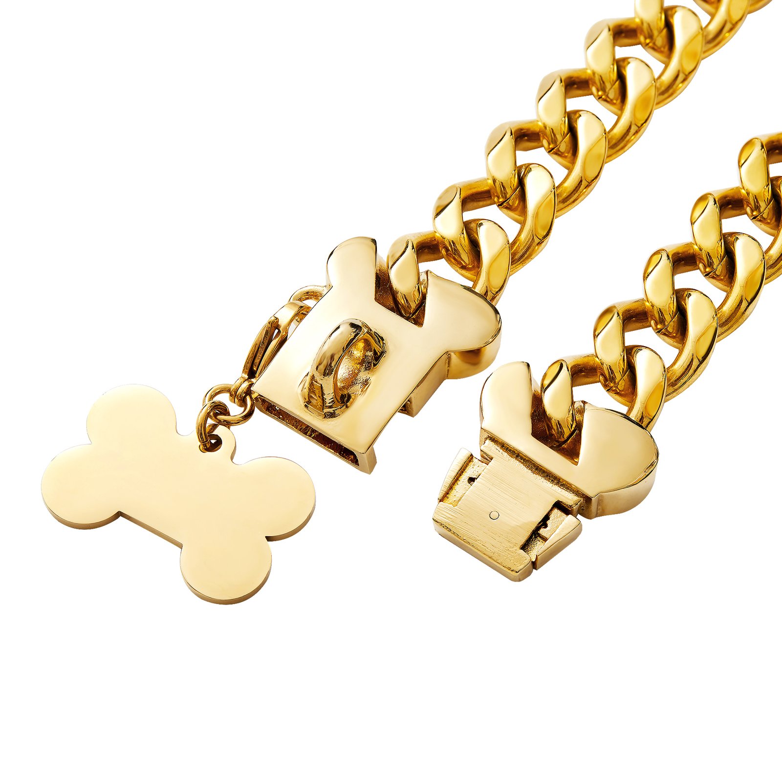 Strong Stainless Steel Gold Dog Chain Collar with Easy Lock & Release Buckle,18K Gold silver Plated Cuban Link Chain Dog Necklace Collar for Medium Large Dogss