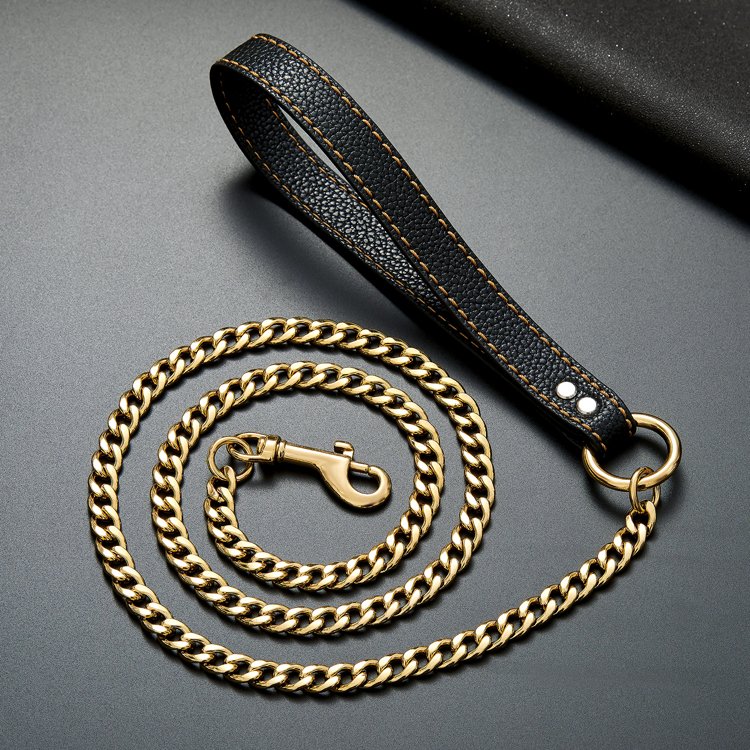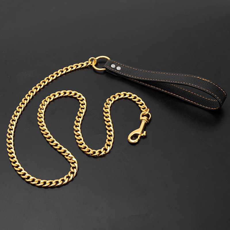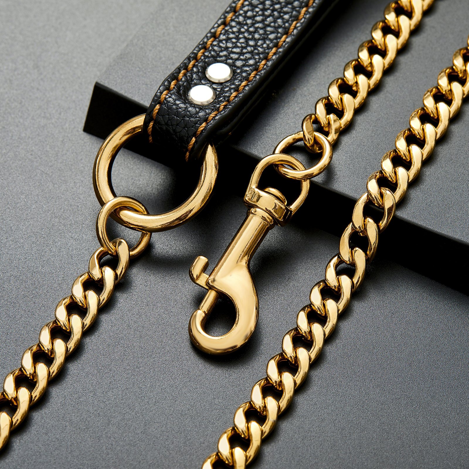 Gold Chain Dog Leash,12MM Strong Stainless Steel Cuban Link Chain,18K Gold Plated Metal Dog Leash with Genuine Leather Handle for Small,Medium & Large Dogs