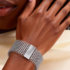 Hand-knitted cuff bracelet, graphite with transparent rubber inlay
