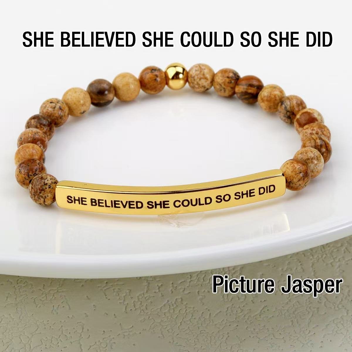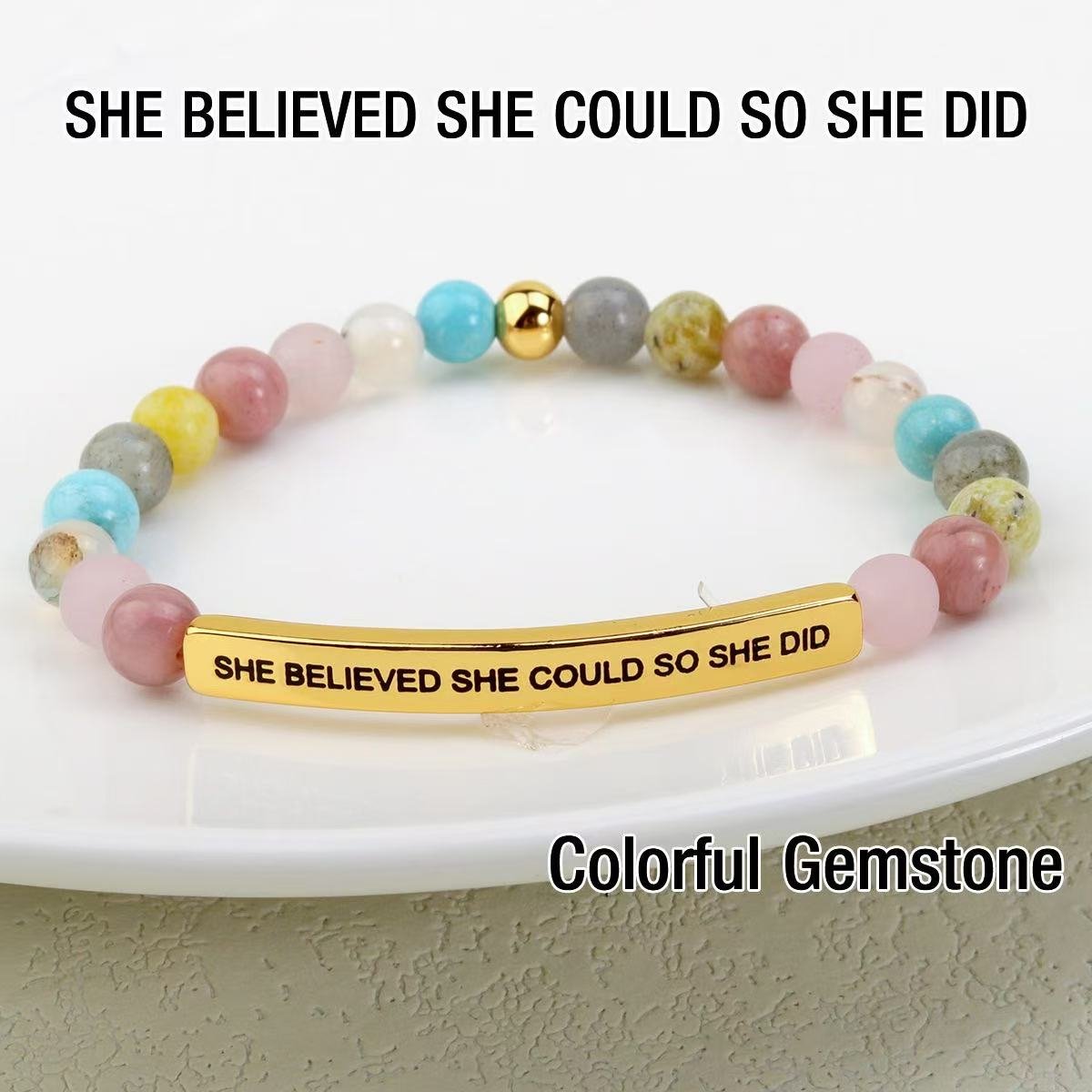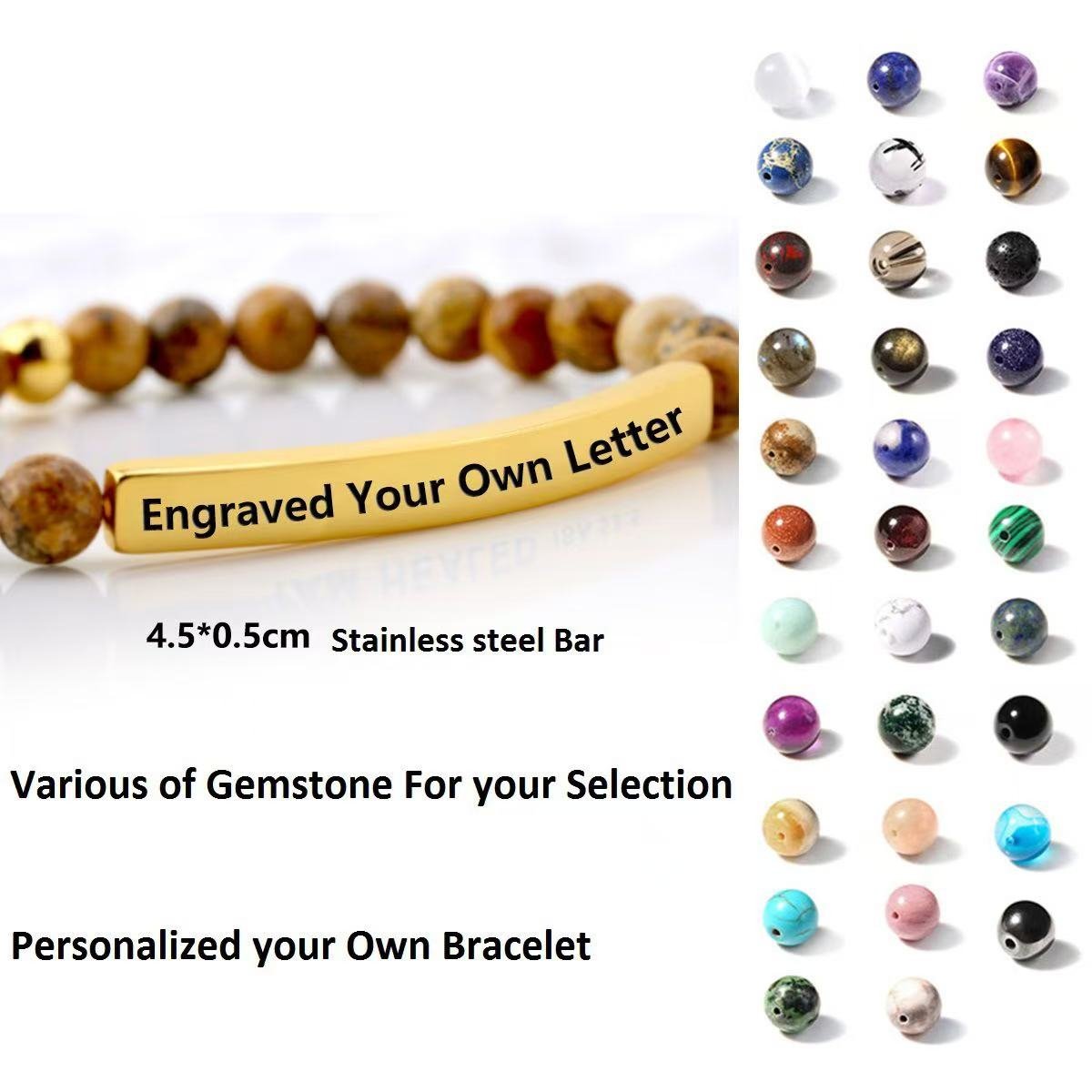 Women 6mm Natural Stone Beaded Stretch Bracelet