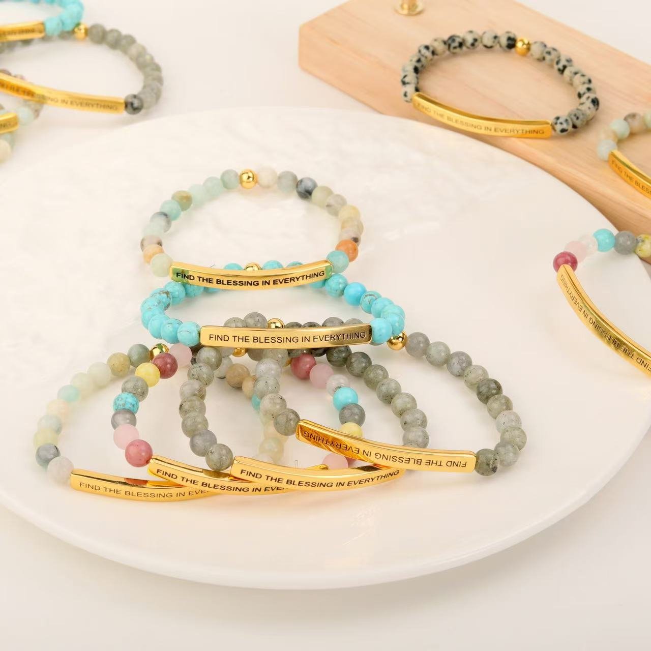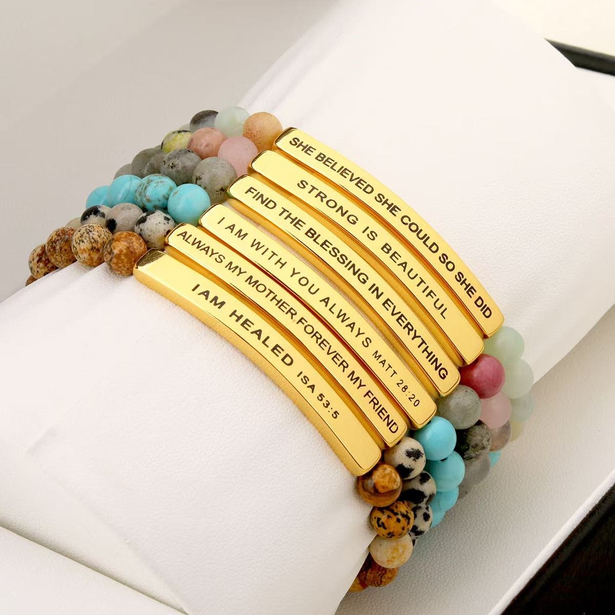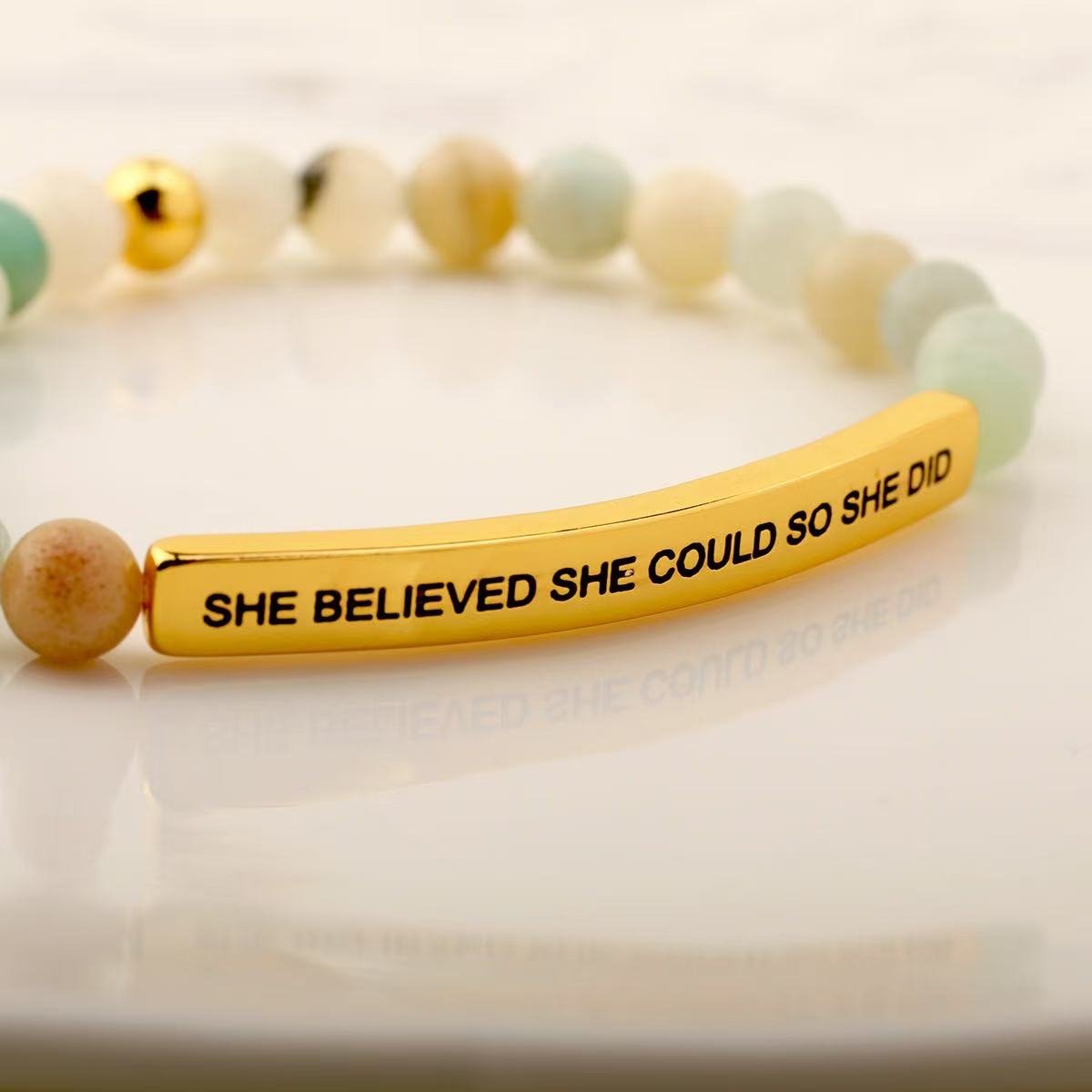 Women 6mm Natural Stone Beaded Stretch Bracelet