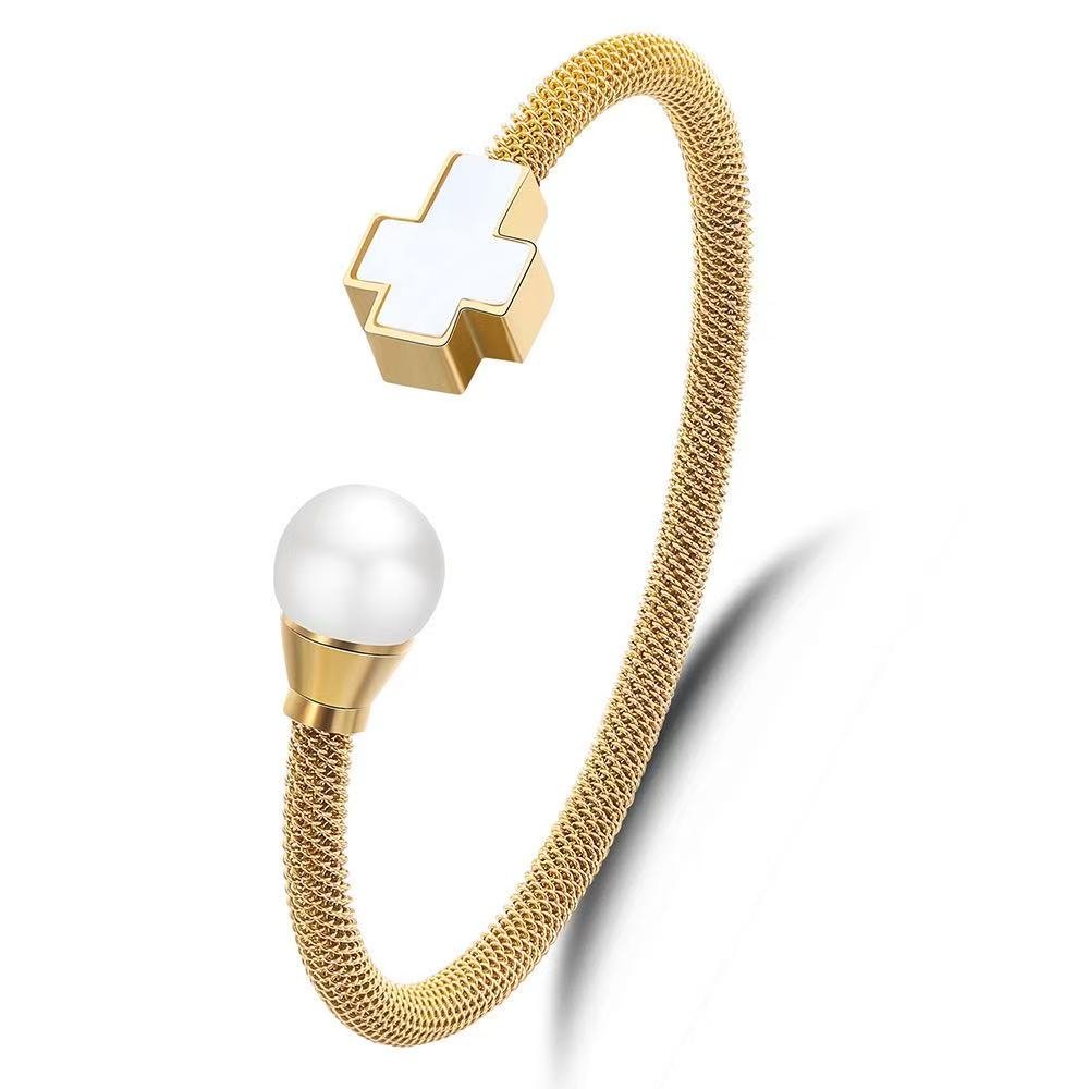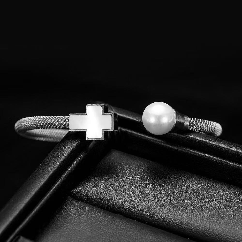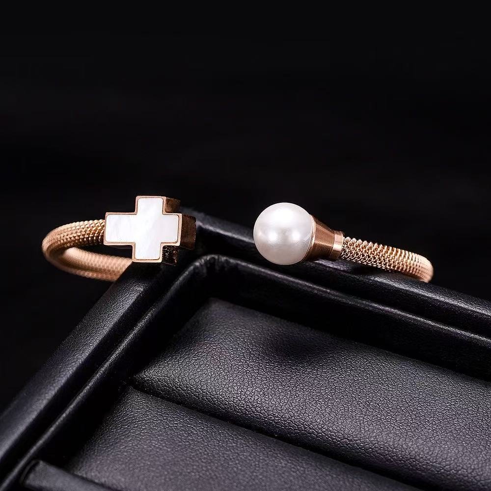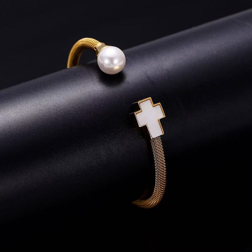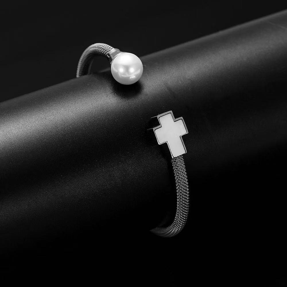 women Pearl cross bracelet